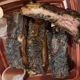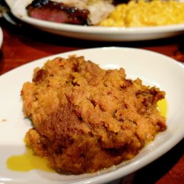 Wood ranch BBQ never disappoints! I always get a combo so I have plenty left over for lunch the next day. Baby back ribs and half chicken are so moist and tasty. Today we had Earl as our server. His amazing energy and personality was so refreshing! Would definitely sit in his section every time!