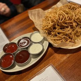 Came here for the first time today and it wasn't busy at all and we were seated quickly. Our server was kind and the service was very fast. We tried the string onions and they were amazing, just wish the ranch was a little thicker. The brisket was a bit dry but besides that our meal was tasty. The spicy cucumber margarita was delicious and I really recommend it.